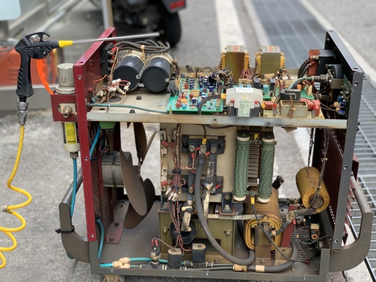 용접기수리의 기본은 내부에 쌓여 있는 분진을