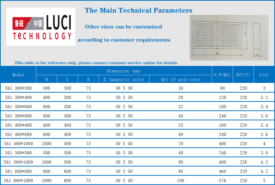 The X61 series products are very suitable for Plane precision machining of workpieces such as Surface Grinder machines. The main reason is that this product has a large suction force and grasps the workpiece. Although the milling machine has a large processing force, this product can be well protected. The workpiece will not be misaligned during machining