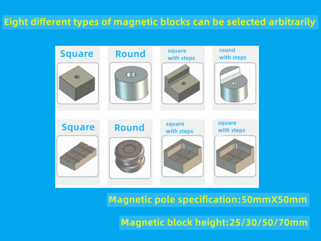 2.Epoxy resin glue is used for sealing, which greatly improves the flatness and sealing of the equipment surface,can reach the accuracy of 0.001mm/1000mm.3.Eight types of magnetic permeable blocks can be selected arbitrarily