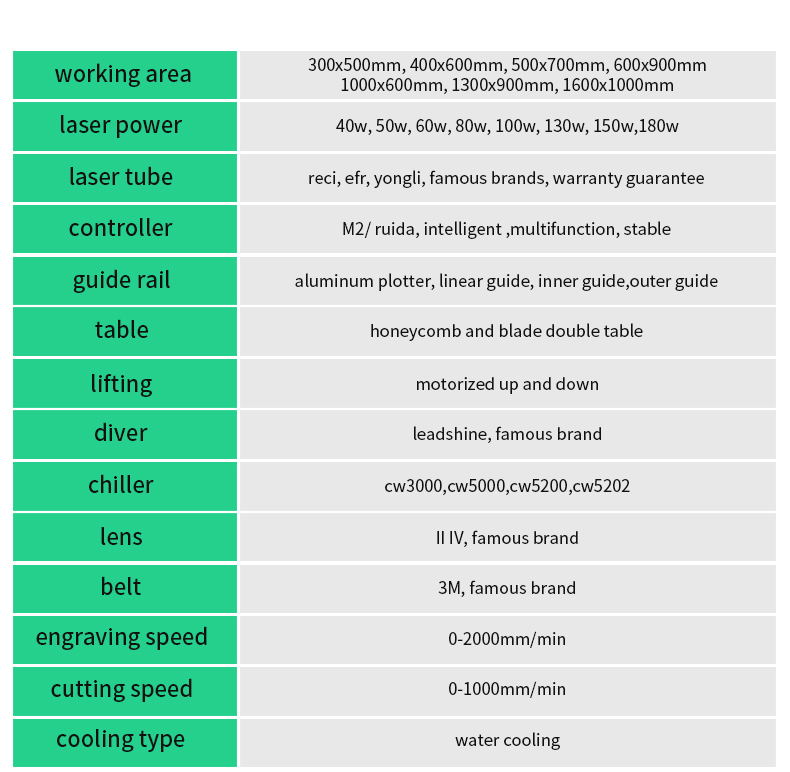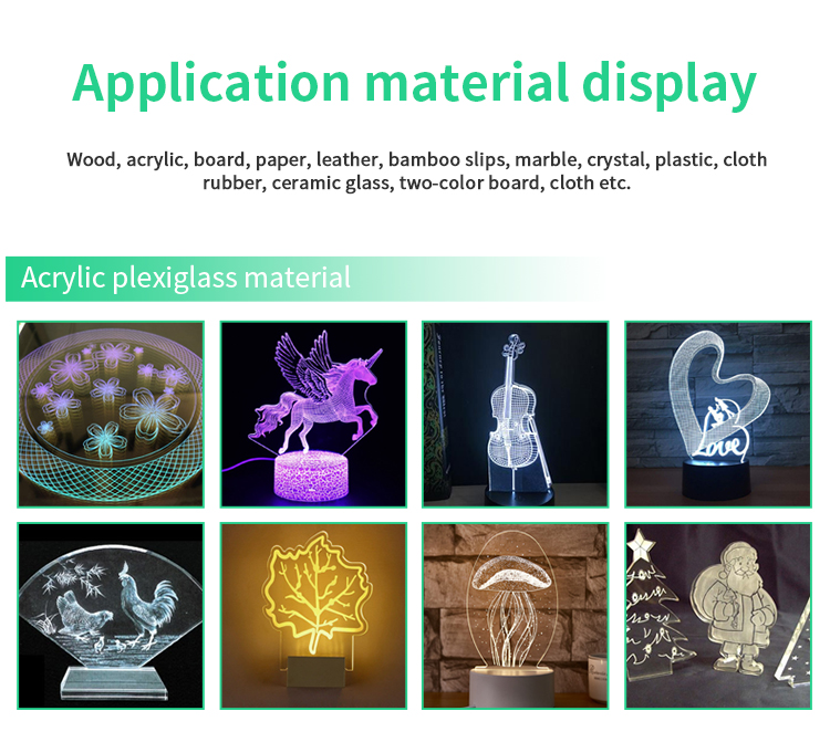 Applicable Materials | wood, acrylic, leather, rubber, fabric, stone, plastic, plywood, painted metal and so on nonmetals |