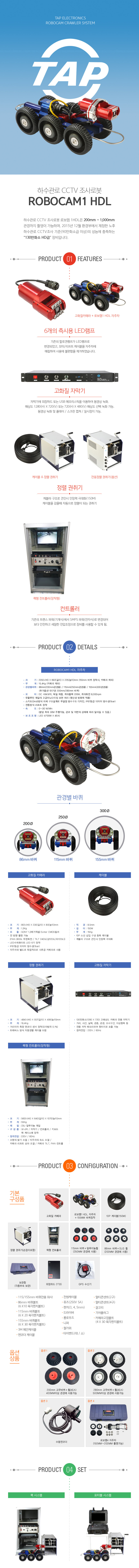 150mm 관경의 관로검사를 하여야 할 경우는 로보 4 자주차만 별도로 구입하시면 됩니다.