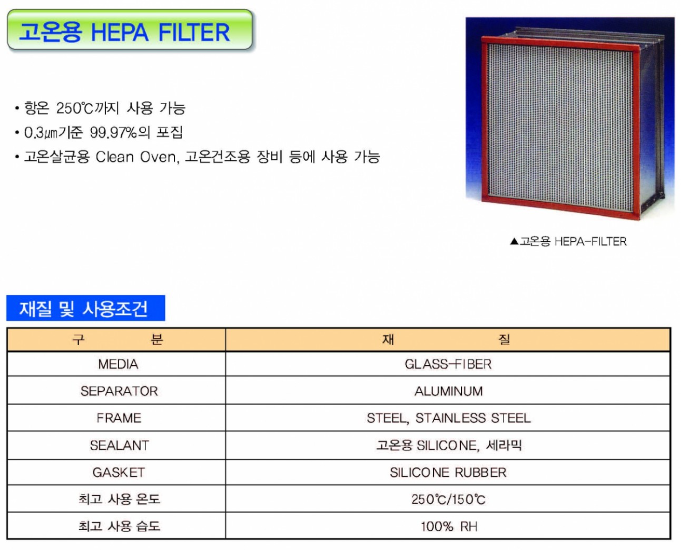 고온용 헤파필터 HEPA FILTER