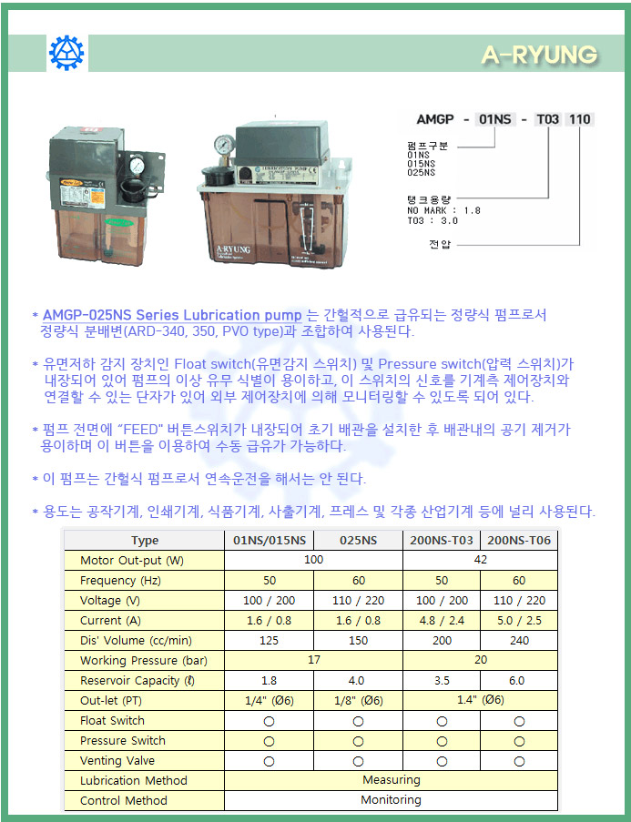 아륭펌프, 그런포스펌프, 압력스위치, 레벨스위치, Cool Jet System, 필터,