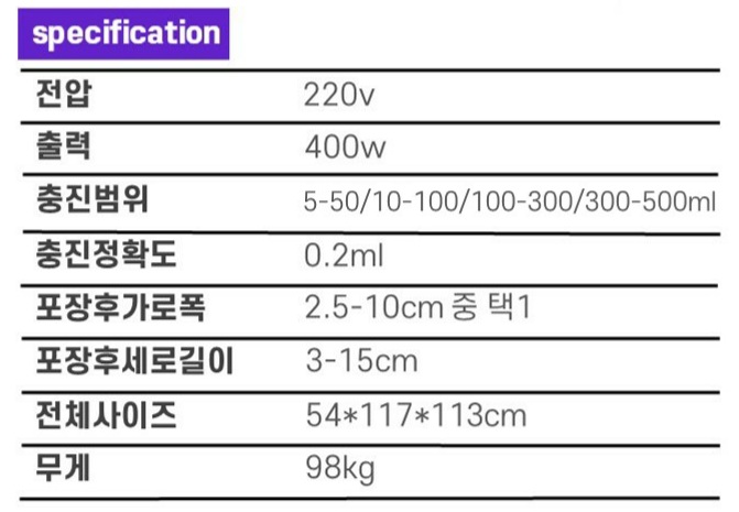 충진범위: 5-50ml