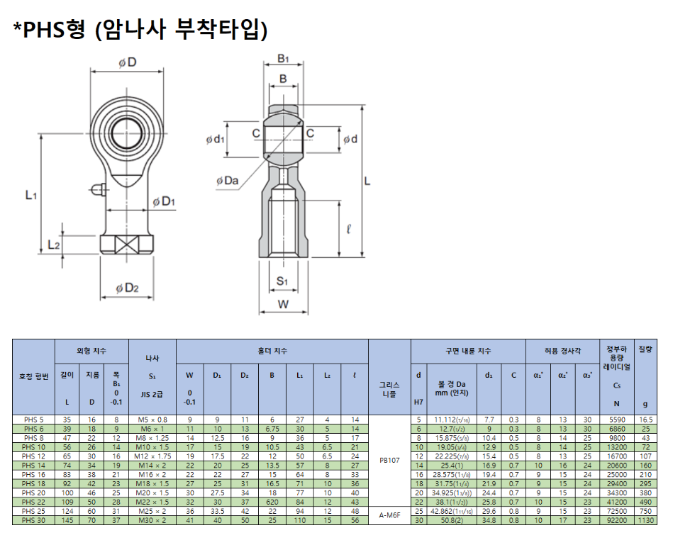 로드엔드 베어링(PHS형)