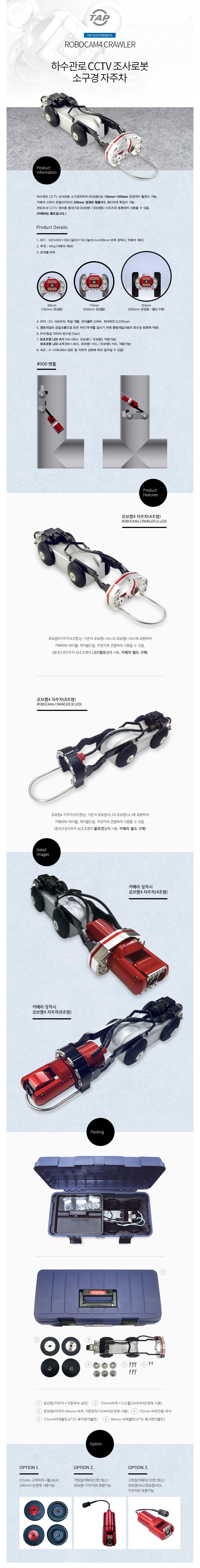 로보캠 4는 주로 상하수도 관 내부를 촬영하는 CCTV 카메라 촬영장비로서 관내부의 여러가지 이상상태를 촬영한 후 유지보수를 하기위한 필수 카메라 검사장비입니다. 로보캠 4는 대한민국의 대표모델로서 험한 하수관로 검사 현장에서 주행성과 방수성과 사용이 간편하여 작업능률이 높고 고장율이 낮아 사용 업체 고객들께 실질적 유익을 드리는 제품입니다.