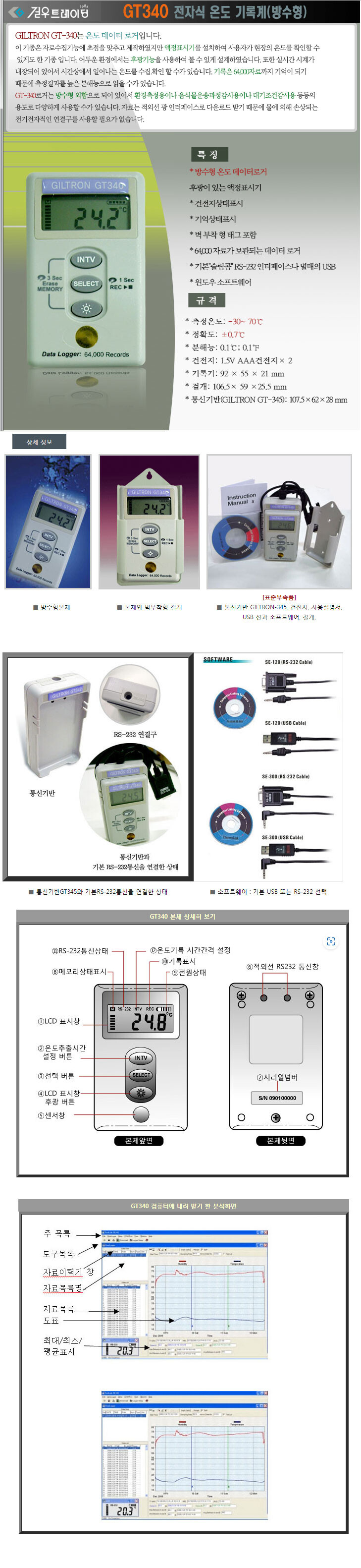 GT340 방수 온도계 데이터로거