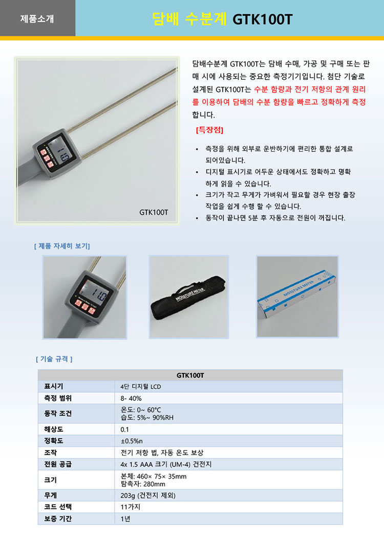 GTK100T 담배 수분계
