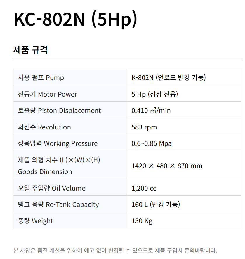 KC-802N(5마력) 코핸즈 콤프레샤