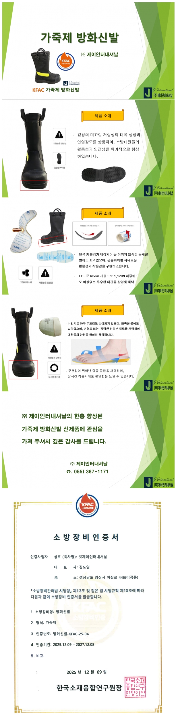 고온단열성 : 250°C 10분 시 신발 내부온도 42°C이하