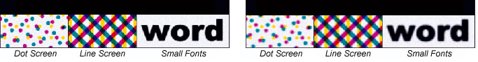 GRAPHIC 그리고 IMAGE를 위하여 각각 별도의 최적화를 실현하며, 매엽 인쇄와 유사한 작은 글씨의 표현, 높은 정밀도의 양면 인쇄의