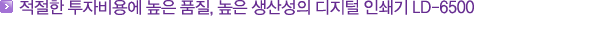 LD-6500은 상업인쇄를 위해 특별하게 설계가 되었으며, 출력 서비스 업체와 그 외의 사용자가 새로운 디지털 프린팅 사업를 시작할 때 요구되는