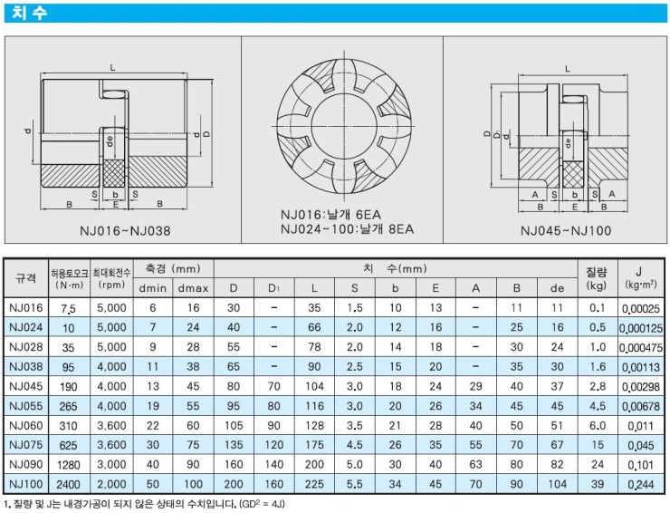 죠오커플링의 허브 이빨과 우레탄 엘레멘트의 완충에 의해 동력을 전달하는 구조의 커플링입니다.